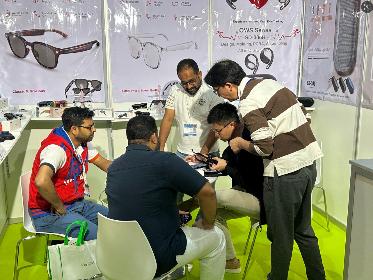 Tại hội chợ, chúng tôi đã giới thiệu kiểu dáng mới nhất của kính chụp ảnh thông minh, kính âm thanh, tai nghe không dây, tai nghe theo dõi nhịp tim và cùng với một số mặt hàng sắp ra mắt cho năm 2026 như tai nghe chơi game, kính thể thao.